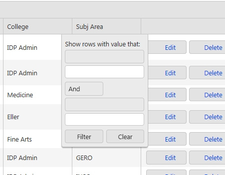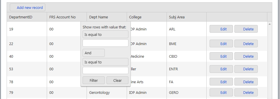 For Filtering, the filtering is enabled, but filtering isn't appearing for the columns.