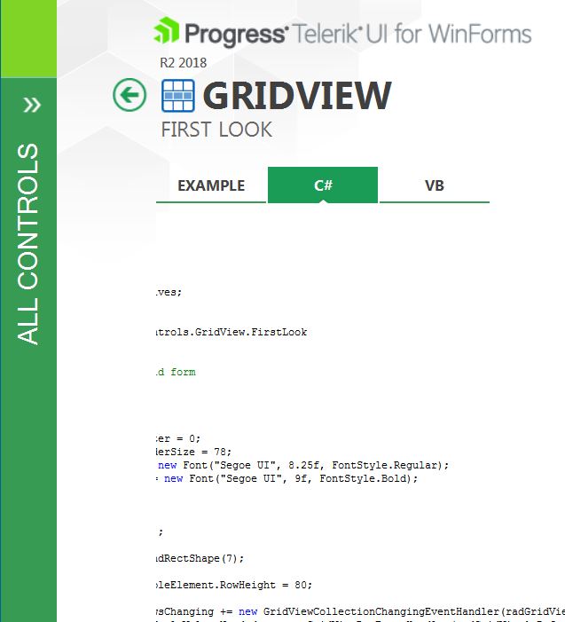 I have downloaded the demo of winform from Telerik. But the left starting part of source code is cut off. I am using Windows 7. Pressing left arrow did not go to the leftmost part (attached screen shot).