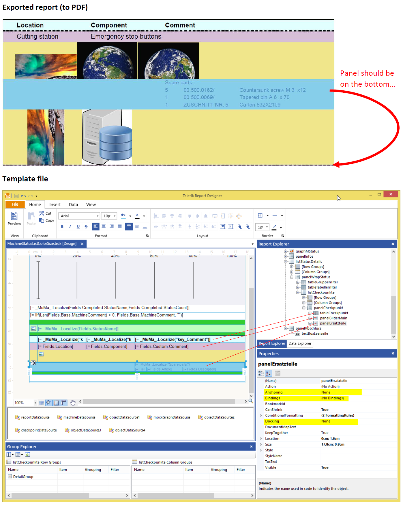 I tried different setting for docking and anchoring but the panels in exported report are always overlapping instead of „stacking“.