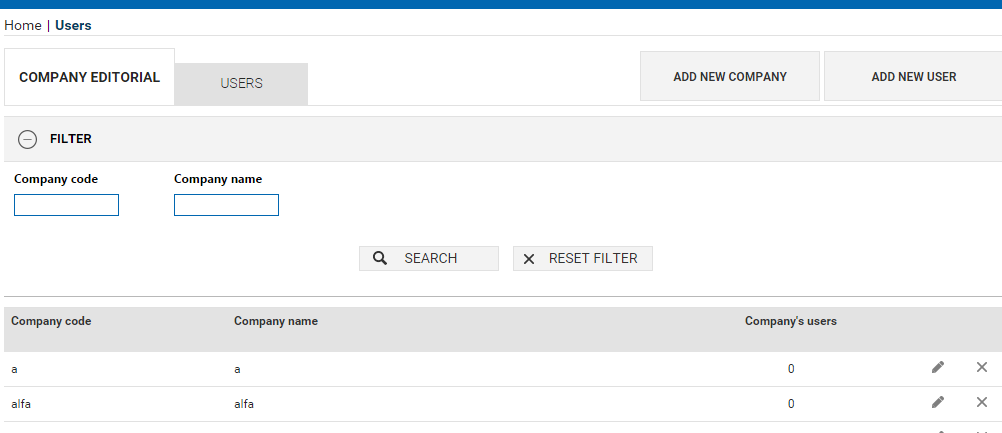 <telerik:RadPageView ID="rpwCompany" runat="server"> <div class="divFilters"> <telerik:RadPanelBar runat="server" ID="pnlBarFilterCompany" Width="100%" ExpandMode="MultipleExpandedItems" Font-Bold="true"> <Items> <telerik:RadPanelItem Expanded="false"> <ContentTemplate> <div class="filterBox"> <div class="filterItemContainer"> <div class="filterItem"> <asp:Label ID="lblTagFilterCompanyCode" runat="server" SkinID="TagFilter" CssClass="filterLabel" /> <telerik:RadTextBox ID="txtFilterCompanyCode" runat="server" MaxLength="16" Width="100px" /> </div> <div class="filterItem"> <asp:Label ID="lblTagFilterCompanyName" runat="server" SkinID="TagFilter" CssClass="filterLabel" /> <telerik:RadTextBox ID="txtFilterCompanyName" runat="server" MaxLength="16" Width="180px" /> </div> </div> <div class="filterButton"> <telerik:RadButton ID="btnSearchCompany" runat="server" Width="140px" Height="65px" Font-Bold="true" Font-Size="16px" ForeColor="#0167B1" OnClick="btnSearchCompany_Click"> <Icon PrimaryIconUrl="~/Images/24x24/search.png" PrimaryIconHeight="24px" PrimaryIconWidth="24px" /> </telerik:RadButton> <telerik:RadButton ID="btnResetFilterCompany" runat="server" Width="140px" Height="35px" Font-Bold="true" Font-Size="16px" ForeColor="Red" OnClick="btnResetFilterCompany_Click" Skin="Sunset"> </telerik:RadButton> </div> </div> </ContentTemplate> </telerik:RadPanelItem> </Items> </telerik:RadPanelBar> </div> <telerik:RadGrid ID="gvListCompany" runat="server" AllowPaging="True" ...............This is the code of second page (Error)