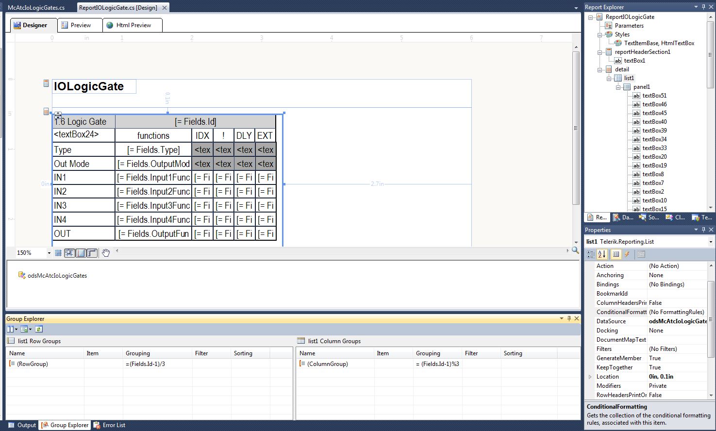 in ide_report.jpg (attached), the list has a RowGroup and a ColumnGroup as you can see in order