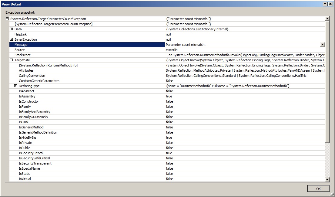 at System.Reflection.RuntimeMethodInfo.Invoke(Object obj, BindingFlags invokeAttr, Binder binder, Object[] parameters, CultureInfo culture)