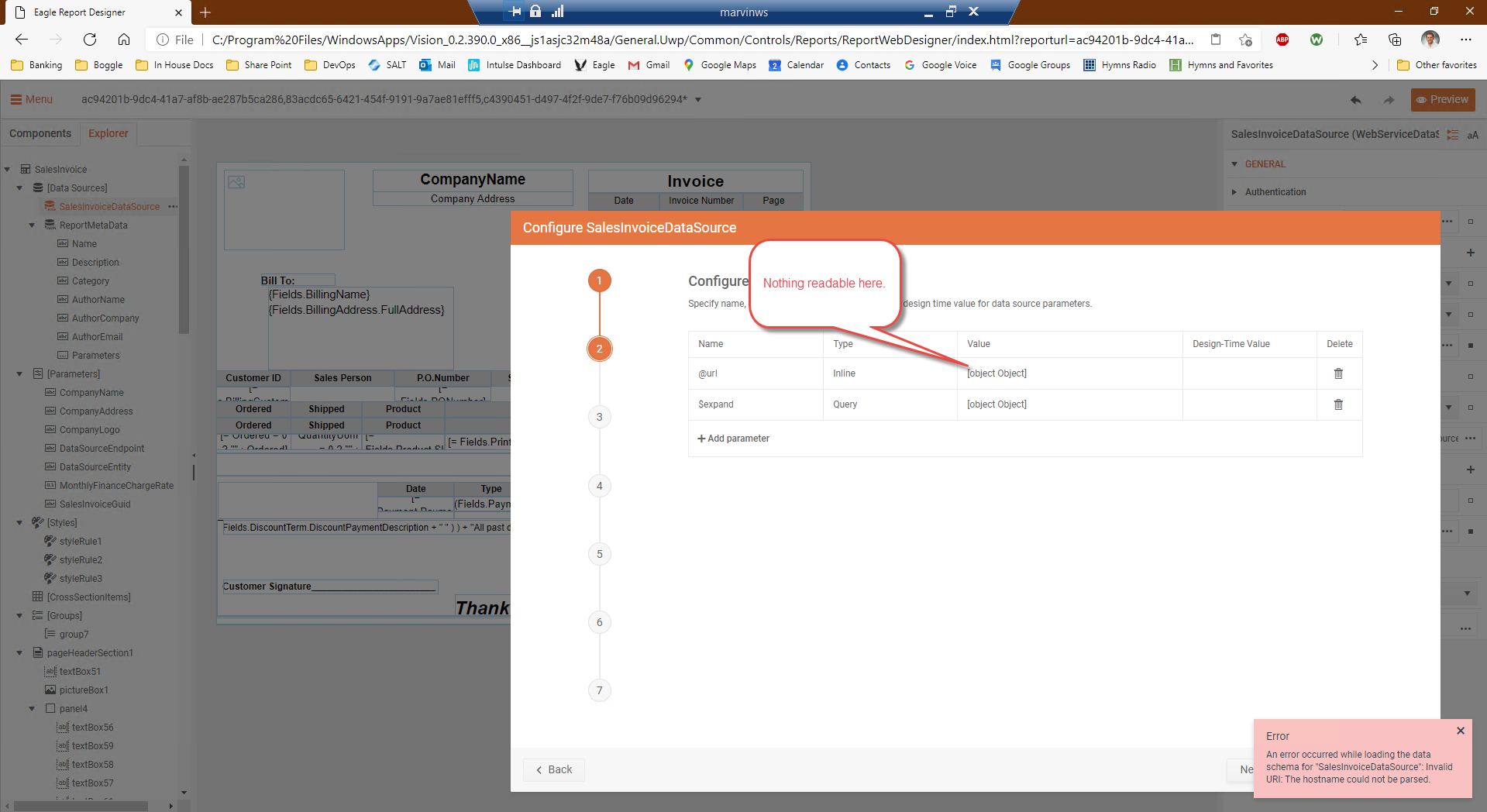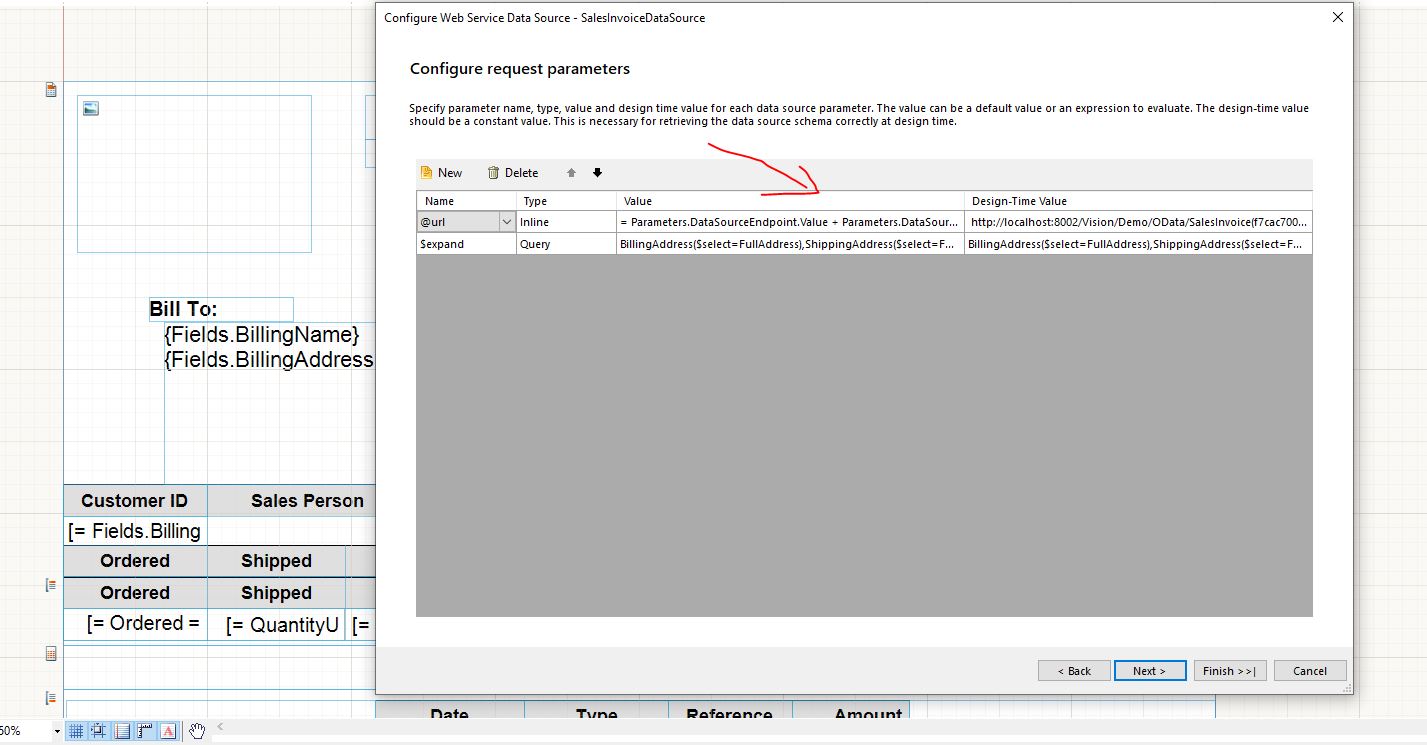 There is a problem with report web designer after updating to R1.2021version. I used web service datasource in a report and created @url inline parameter and $expand query parameter into that datasource to make OData query. But as you see from the attached file, value of those parameters shown Object (see Invoice.png attached picture) instead of showing real value. I see this issue after updating to R1 2021, but in previous version it was showing correctly. If you open the report via Standalone Report Designer it shows correctly (second attached picture). Is it problem in R1 2021 or should I change something?