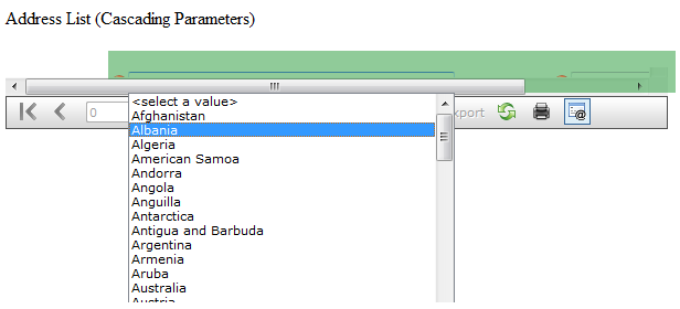 I created 2 cascading parameters that are drop down boxes per the sample in the Learning Guide. In Preview, the parameters appear as expected. However, when I use the ReportViewer control on a web form, the parameters appear "behind" the form. This happens in IE and Firefox. See attached png.