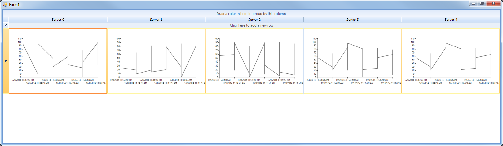 Random r = new Random (); GridServer.Rows.Add ("1"); for (int i= 1; i <= 16; i++){ DataTable table = new DataTable (); table.Columns.Add ("DateTime", typeof (DateTime)); table.Columns.Add ("Value", typeof (double)); table.Rows.Add (DateTime.Now, r.Next (100)); table.Rows.Add (DateTime.Now.AddSeconds (30), r.Next (100)); table.Rows.Add (DateTime.Now.AddSeconds (60), r.Next (100)); table.Rows.Add (DateTime.Now.AddSeconds (90), r.Next (100)); table.Rows.Add (DateTime.Now.AddSeconds (120), r.Next (100)); table.Rows.Add (DateTime.Now.AddSeconds (150), r.Next (100)); GridServer.Rows[0].Cells[i].Value = table; }Basing on the definition, the type of