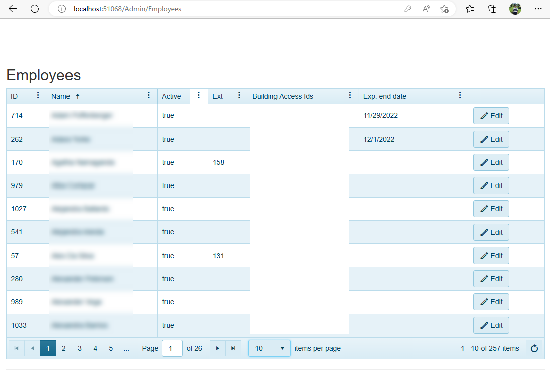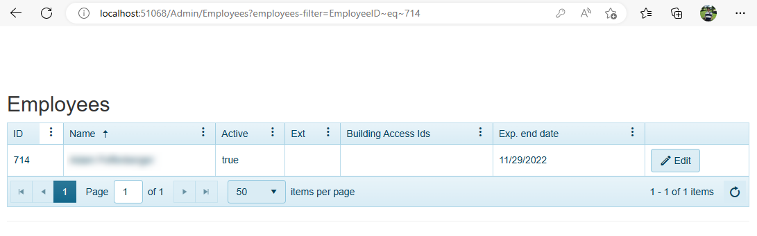 http://localhost:51068/Admin/Employees?employees-filter=EmployeeID~eq~714We will get the following result: