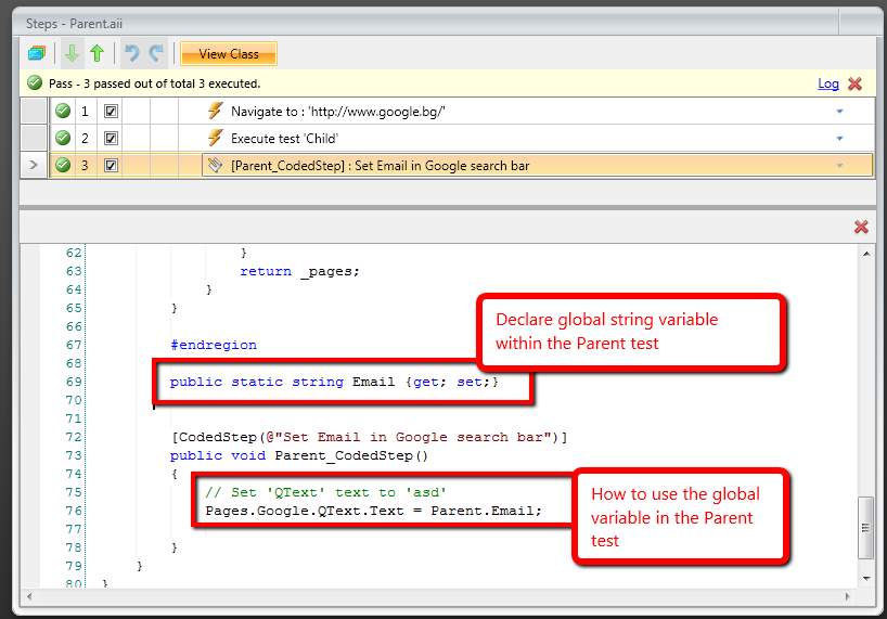 I have a variable that is created in a Subtest that I would need to reuse in another subtest. The System I am using requires Unique email addresses for Registration. In the Register subtest, I concat the First Name, Last Name, and Date Ticks to create a unique email address every time. The email address does not need to be valid at this time.