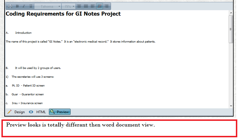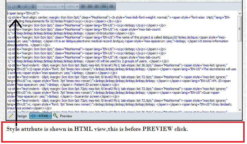 Then after by showing the HTML view or Preview the content, the actual view which is pasted is lost and all are goes left aligned, and aslo STYLE attribut from page also removed.