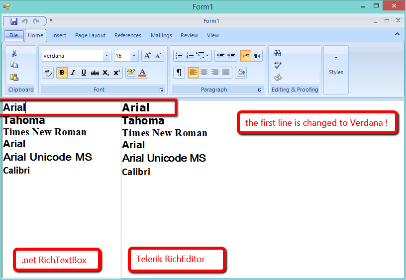 In the screenshot you can see, left the standard .net rtf control and rigth the Telerik richtexteditor.