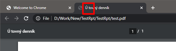 Chrome: Bad - wrong caption in title bar. You need add DocumentTitle property - deviceInfo.Add("DocumentTitle", "Účtovný denník");