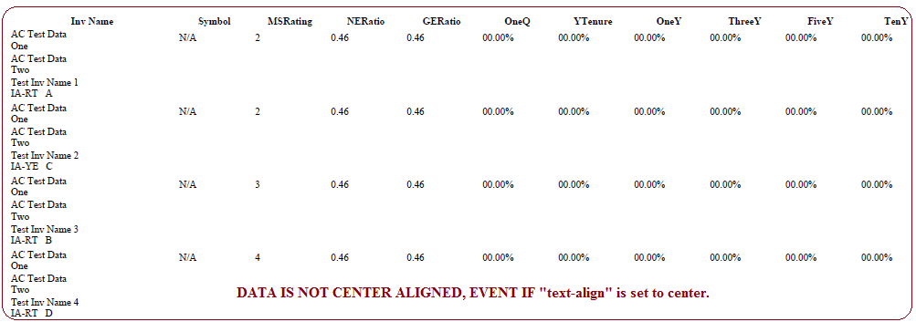 PFA - Snap shot of presently exported pdf file where data is not center aligned.