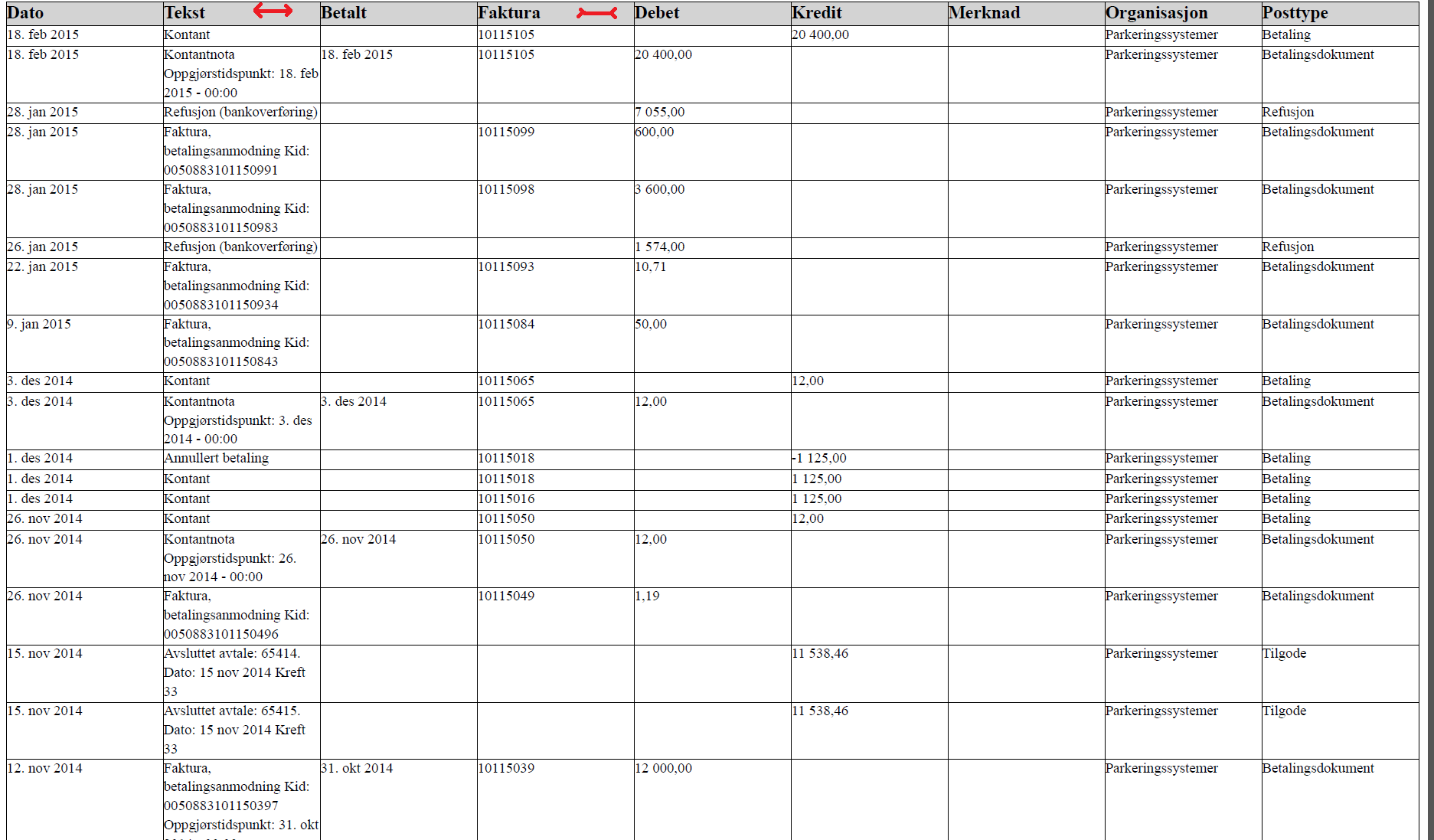 insted I want my export document to have auto sized columns so that the text line of the document get as much space as it can.