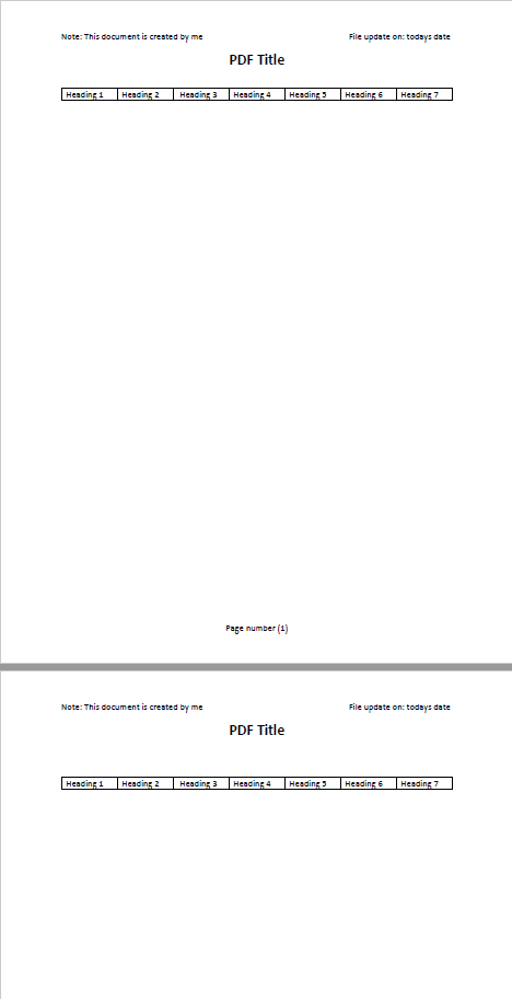 public static RadFixedDocument CreateDocumentWithHeadersAndFooters(){ RadFixedDocument document = new RadFixedDocument(); using (RadFixedDocumentEditor documentEditor = new RadFixedDocumentEditor(document)) { GenerateDocumentContentWithoutHeadersAndFooters(documentEditor); } int numberOfPages = document.Pages.Count; for (int pageIndex = 0; pageIndex < numberOfPages; pageIndex++) { int pageNumber = pageIndex + 1; FixedContentEditor pageEditor = new FixedContentEditor(document.Pages[pageIndex]); DrawHeaderAndFooter(pageEditor, pageNumber, numberOfPages); } return document;}We have a feature request to provide an API for easily drawing such content: Implement headers and footers in RadFixedDocumentEditor, which you can subscribe to by clicking the Follow button and vote for its implementation to increase the priority of the task.