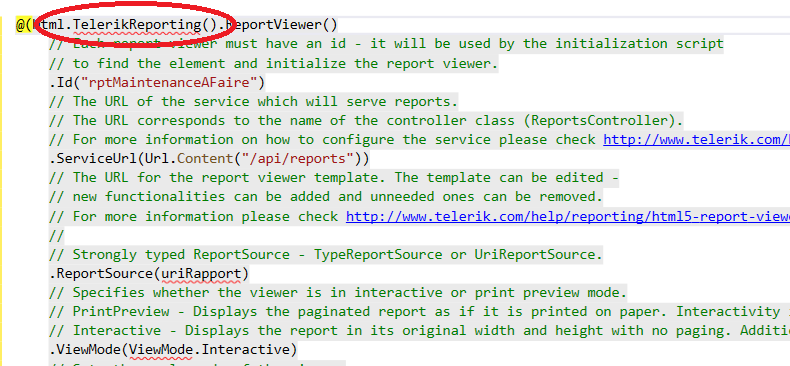 ...TelerikReporting() is always in red. Nuget missing? See attachement for the ones in have in my project.