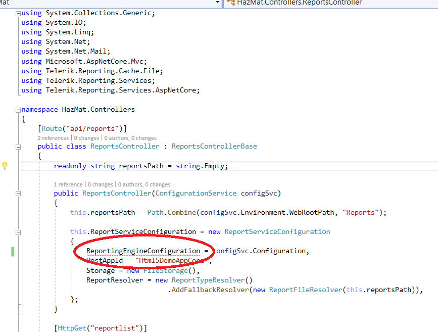 public ReportsController(Startup.ConfigurationService configSvc) .