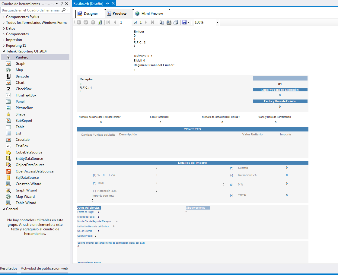 I designed a report using an ObjectDataSource, usually placed contrloles TextBox and HtmlTeextBox kind in panes in the section header and footer, and when rendering the report, it disappears the entire panel without displaying any errors or displayed message, why is this happening?