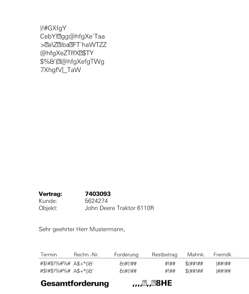 sorry that it took me so long to post a reply. The suggested workaround does not work for me. The Font is set correctly when i was deugging the document, but when the document is sent to the pdfViewer it still shows up as glyphs.
