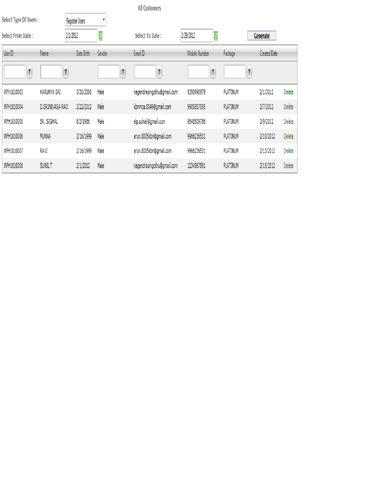 I am using RadGrid for displaying Users, because we had a multiple options with Rad Grid.Enable Delete option in Rad Grid