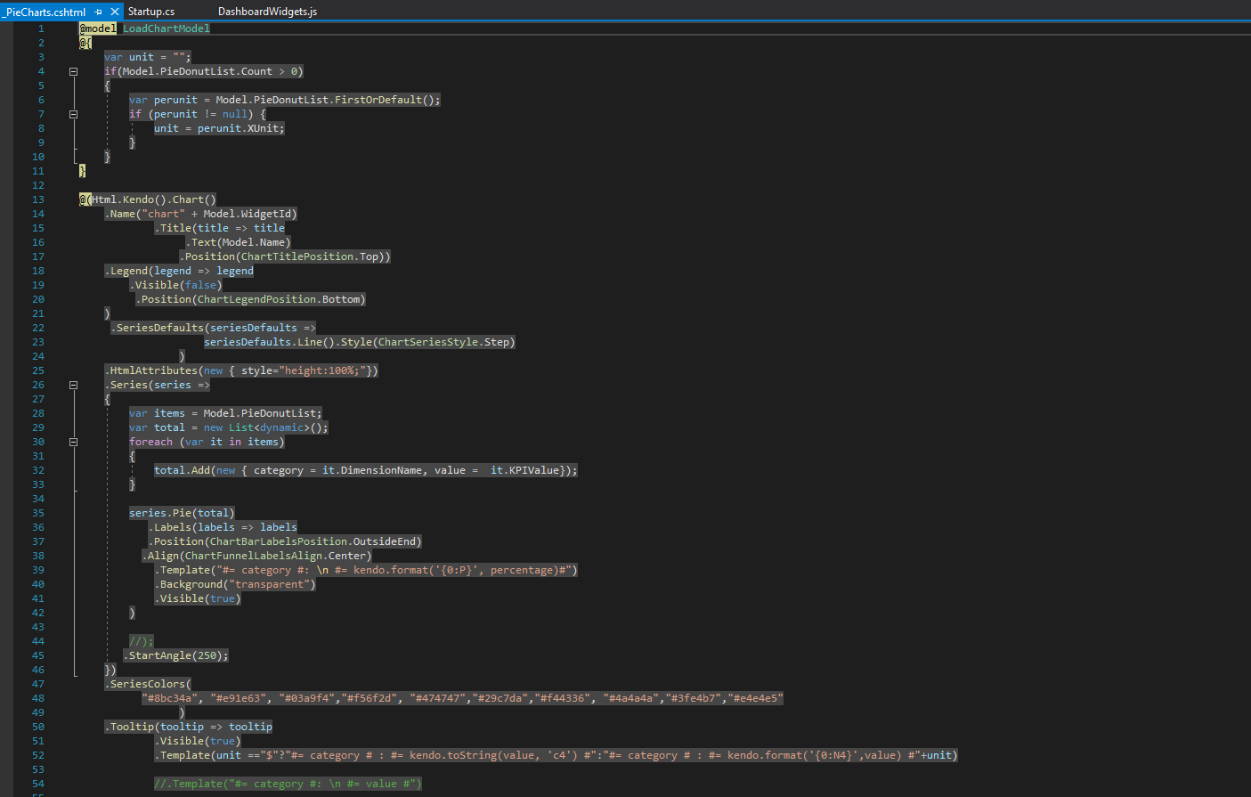 Currently i'm working on dynamically data binding in kendo pie chart in .net core 3.0.