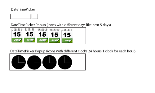I am using the DateTimePicker in a prototype project and I wonder if it possible to display Calendar Day Icons for each date with date displayed on top of the icon and also show digital clock icons for each time pick.