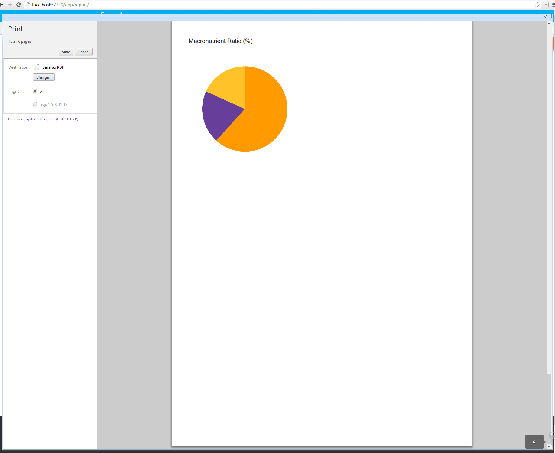 If the pie chart has one of its four data points equaling zero it will not print correctly or export to pdf correctly. Yet if it has a value greater than zero it will work as normal see screen shots.