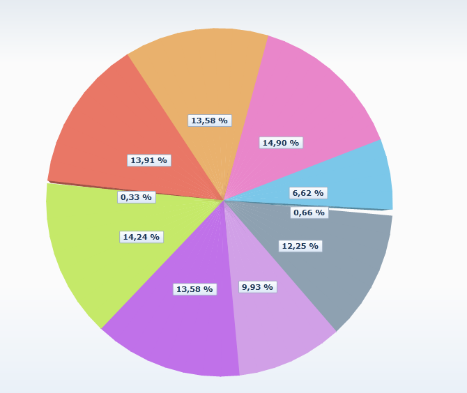 I use PieChart (3D), it's smart. But, if my data has the item has value < 1%, the "respective slice" of chart not display.