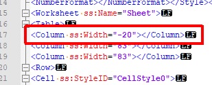 XML-FEHLER in TabelleGRUND: Ungültiger WertDATEI: C:\Users\...\Test.xlsGRUPPE: TableTAG: ColumnATTRIBUT: WidthWERT: -20