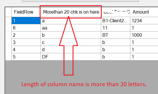 When I return data set from db, it has a field named "MoreThan 20 chk is on here" which am trying to display on PivotGrid. But this field has more than 20 characters hence on pivot grid we can see column name as "MoreThan 20 chk is o", What changes am suppose to make so that it displays full name "MoreThan 20 chk is on here"
