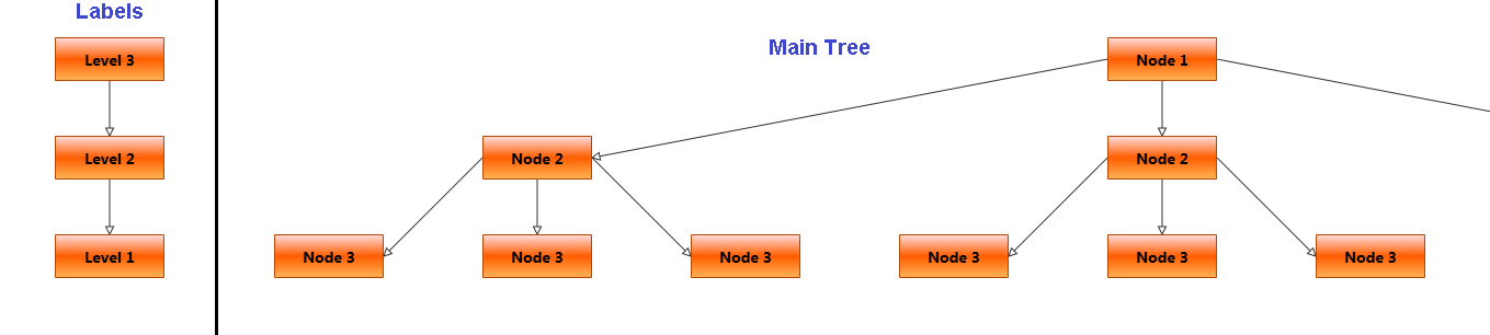We need to display a dynamic tree with multiple levels as showed in attached image. Levels needs to be left aligned and will be separate from main. Both the trees will be generated dynamically, and should display with the tree layout.