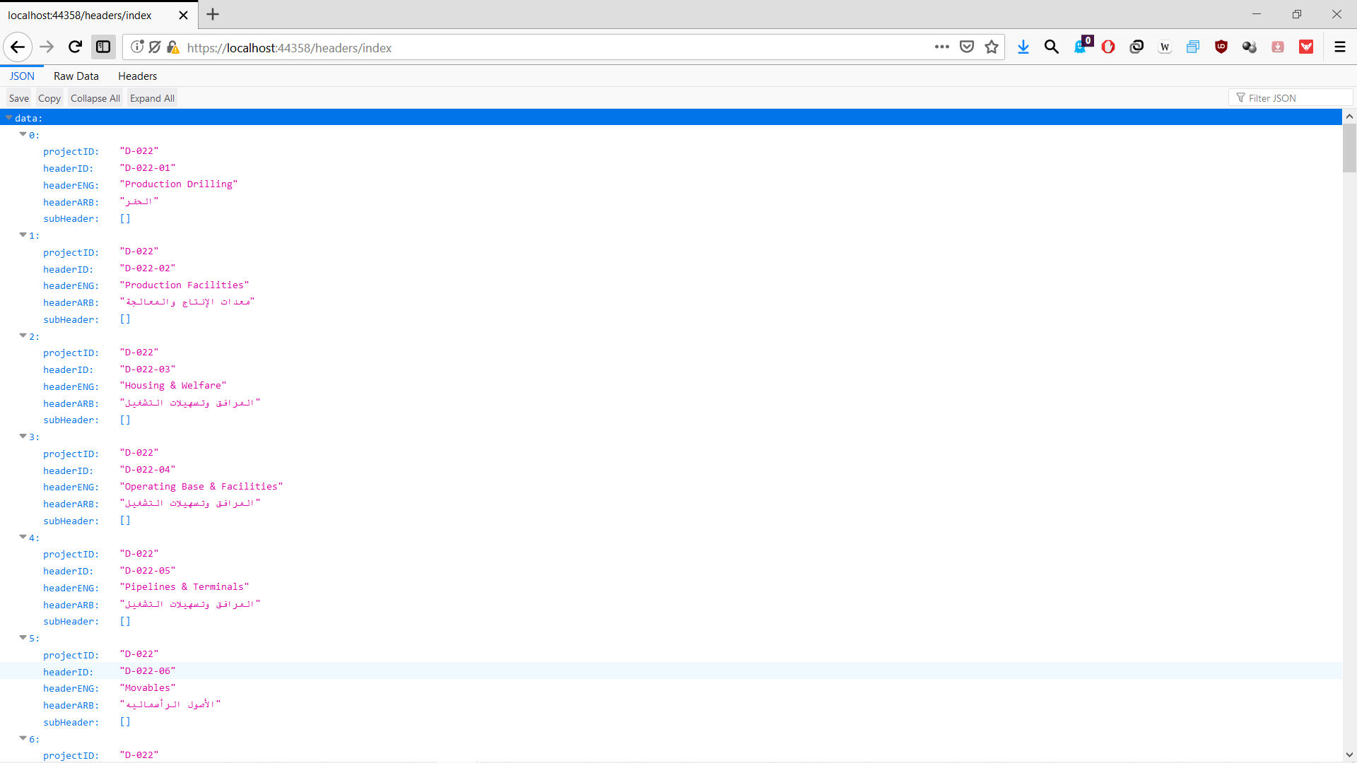 using System;using System.Collections.Generic;using System.ComponentModel.DataAnnotations;using System.ComponentModel.DataAnnotations.Schema;namespace SUCOCoreControl.Models.RazorBudget{ public partial class Header { public Header() { SubHeader = new HashSet<SubHeader>(); } [StringLength(6)] public string ProjectID { get; set; } [StringLength(30)] public string HeaderID { get; set; } [StringLength(60)] public string HeaderENG { get; set; } [StringLength(60)] public string HeaderARB { get; set; } [ForeignKey("ProjectID")] [InverseProperty("Header")] public virtual Project Project { get; set; } [InverseProperty("Header")] public virtual ICollection<SubHeader> SubHeader { get; set; } }}The controller