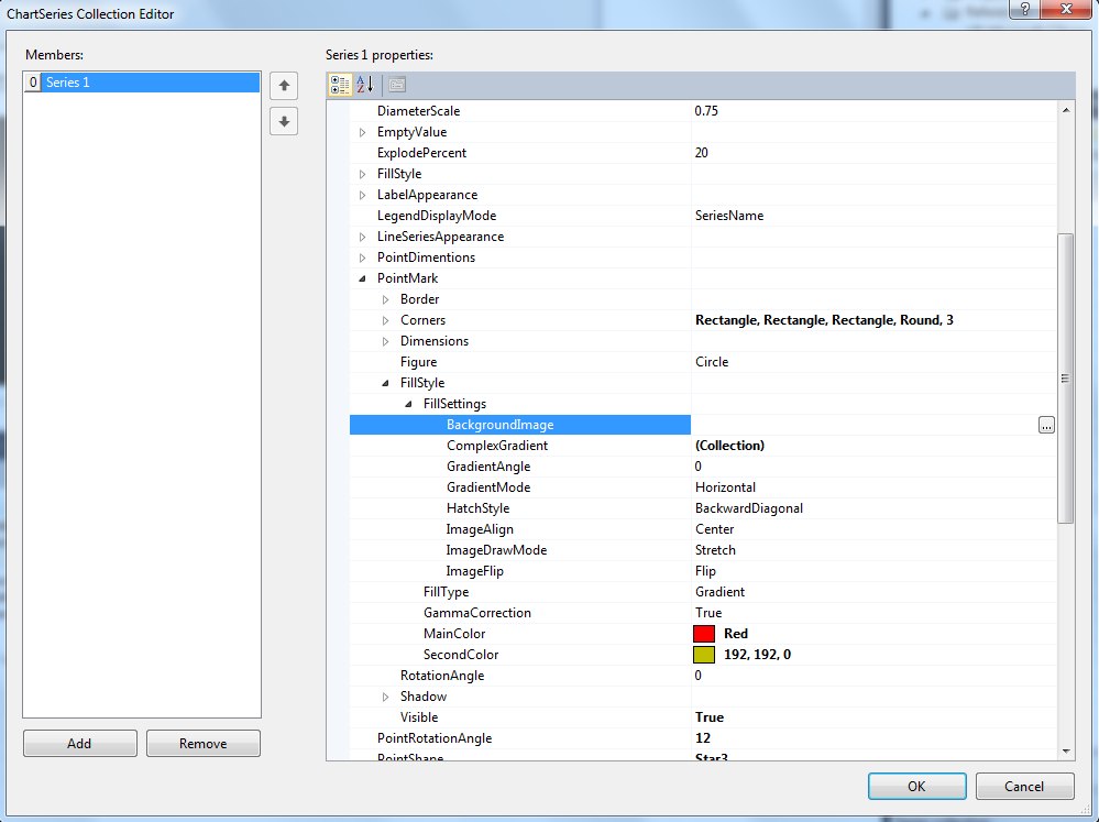 Could you write a short example with the chart control displaying a point series? My problem is that while I easily can se the point:s value labels in the chart I dont understand how to get the actual dots to be displayed.