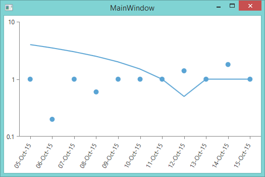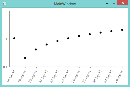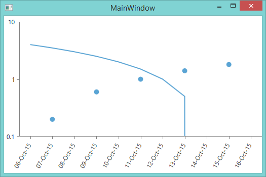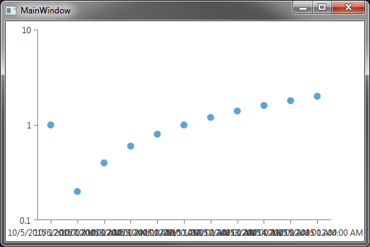 <telerik:RadCartesianChart> <telerik:RadCartesianChart.HorizontalAxis> <telerik:DateTimeContinuousAxis LabelFitMode="Rotate" LabelFormat="dd-MMM-yy" /> </telerik:RadCartesianChart.HorizontalAxis> <telerik:RadCartesianChart.VerticalAxis> <telerik:LogarithmicAxis Minimum="0.1" Maximum="10" /> </telerik:RadCartesianChart.VerticalAxis> <telerik:RadCartesianChart.Series> <telerik:PointSeries Name="PointSeries" /> <telerik:LineSeries Name="LineSeries"/> </telerik:RadCartesianChart.Series></telerik:RadCartesianChart>