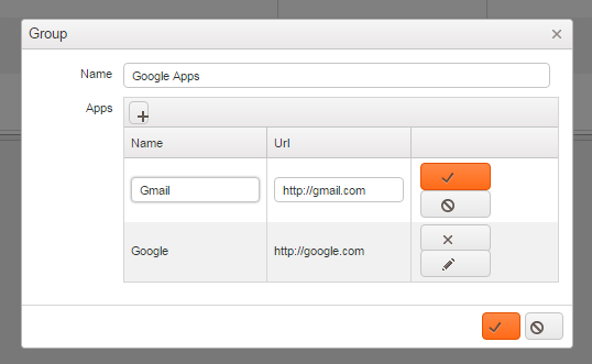 I have a grid of groups, and each group can have a bunch of items. The items have two fields right now (url and name, ie two text fields) . I'd like to create a new group, and in the popup editor, being able to add items to it.