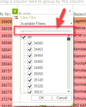 the goal is to get an input possibility for filtering without using the mouse.