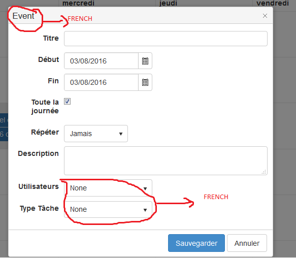How to localize in french create event popup ?