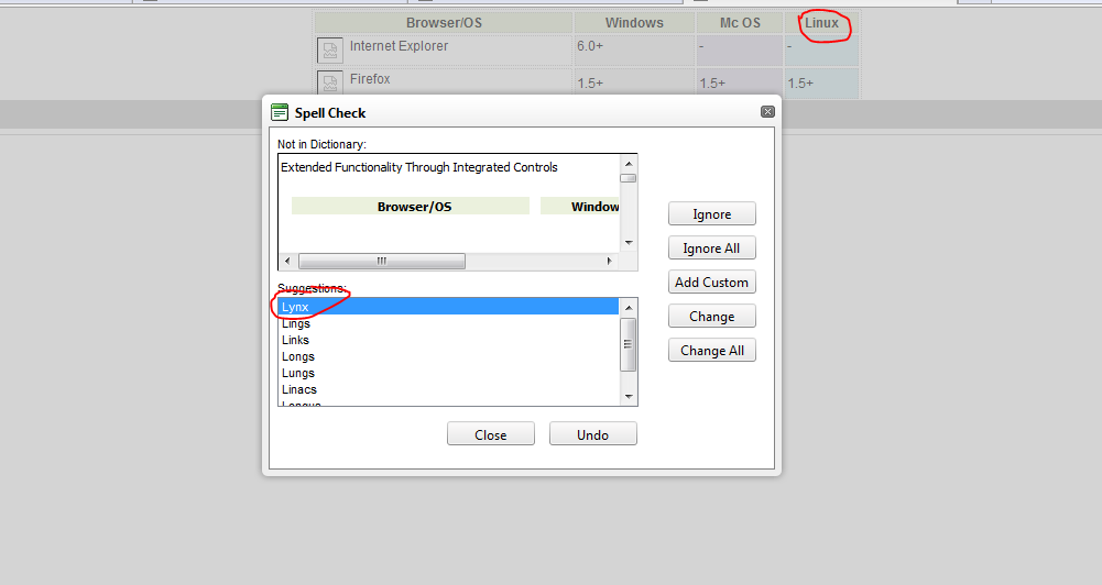 I have integrated CKEditor with popup spell checker but when I use more content with tables and list tag, the checker does not scroll well. It does not scroll the content in table if there is any misspell. Please see attachment where popup does not show the "Linux" in textarea but suggest spell for this. This will make user confuse.