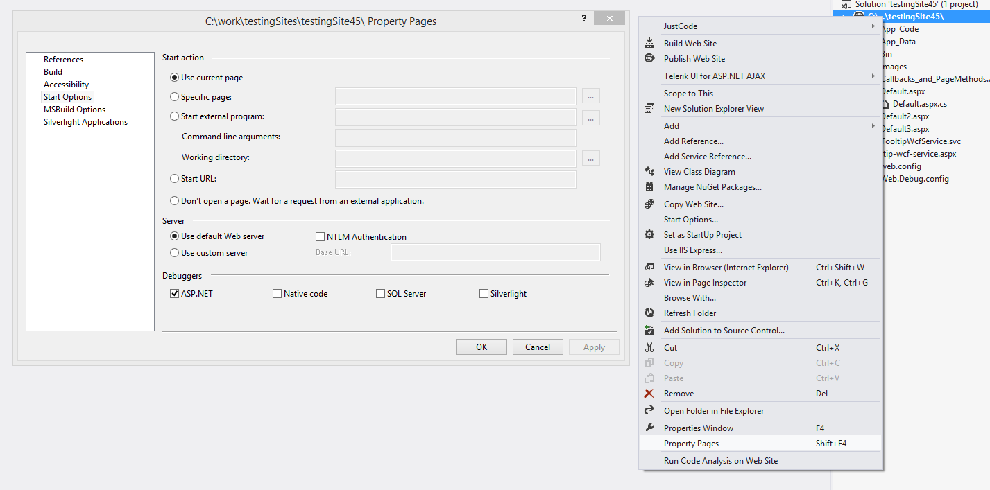 I'm new to Telerik. I'm jumping into an existing project and trying to figure stuff out. The first problem I'm having is that the project is trying to run on port 80. I can't even debug. On a typical ".net Web Forms" project, I can right-click, go to properties, web, and change the port. No such dialog to be found on this project.
