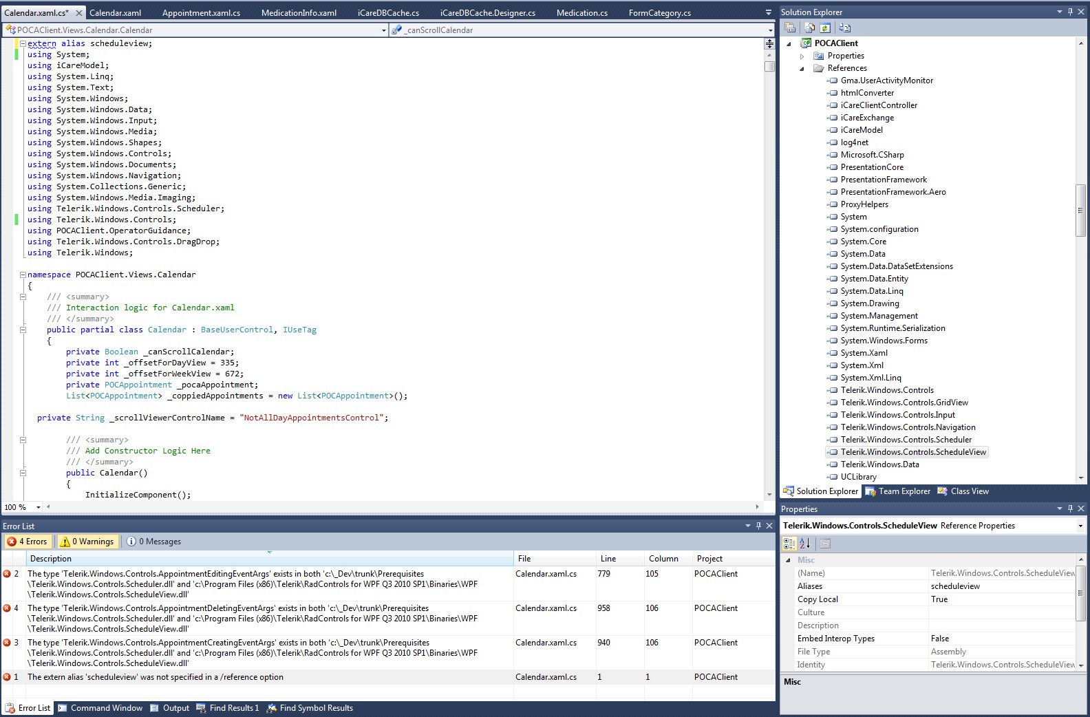 Because the extension to telerik.windows.controls is within telerik.windows.controls.scheduleview and .scheduler I have not been able to limit the alias to only scheduleview in the scheduler implentation.