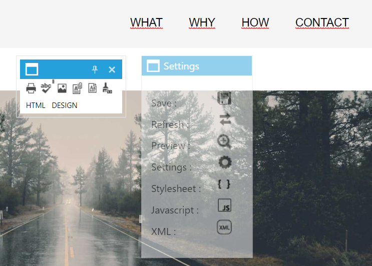 <telerik:RadEditor id="RadWebPage" Runat="server" Width="100%" Skin="Metro" Editable="True" DialogHandlerUrl="~/Telerik.Web.UI.DialogHandler.axd" ToolsFile="~/xml/ToolsFileWebs.xml" ToolbarMode="Floating" ToolsWidth="190px" EditModes="Design, HTML" AutoResizeHeight="true" OnClientLoad="OnClientLoad" OnClientModeChange="OnClientModeChange" NewLineMode="Br" StripFormattingOptions="All" ContentFilters="None" ><DocumentManager SearchPatterns="*.css, *.doc, *.docx, *.pdf, *.xls, *.xlsx, *.csv, *.txt, *.js, *.xlm" /><TemplateManager SearchPatterns="*.html, *.txt" /><Tools><telerik:EditorToolGroup><telerik:EditorTool Name="ChangeModeHTML" Text="HTML" ShortCut="CTRL + SHIFT + H / CMD + H" ShowIcon="false" ShowText="true"/><telerik:EditorTool Name="ChangeModeDESIGN" Text="DESIGN" ShortCut="CTRL + SHIFT + D / CMD + D" ShowIcon="false" ShowText="true" /></telerik:EditorToolGroup></Tools></telerik:RadEditor> <script type="text/javascript"> Telerik.Web.UI.Editor.CommandList["ChangeModeHTML"] = function(commandName, editor, args) { editor.set_mode(2); }; Telerik.Web.UI.Editor.CommandList["ChangeModeDESIGN"] = function(commandName, editor, args) { editor.set_mode(1); }; //Below is needed to activate the design switch in html mode function OnClientModeChange(editor, args) { var mode = editor.get_mode(); switch (mode) { case 2: setTimeout(function() { var tool = editor.getToolByName("ChangeModeDESIGN"); tool.setState(0); }, 0); break; } } </script>0