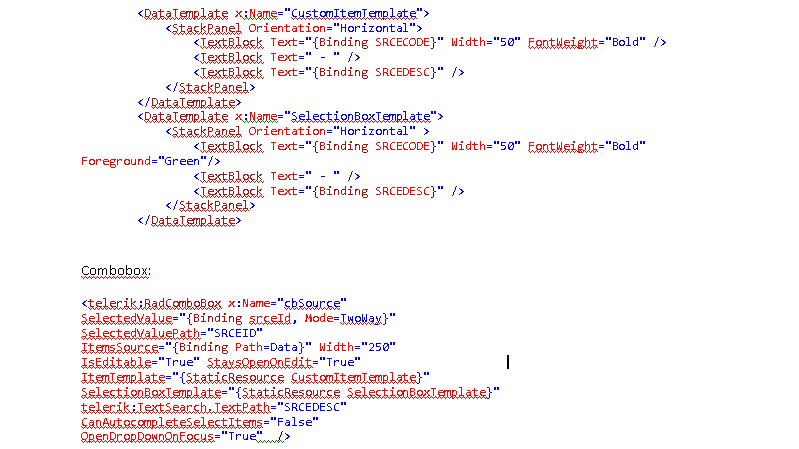 ItemTemplate="{StaticResource CustomItemTemplate}" telerik:TextSearch.TextPath="SRCEDESC"