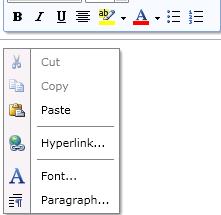 I'd like to reposition the MiniToolbar that is displayed wit the RadRichTextBox control. The toolbar is being clipped when user clicks mouse towards the top of text box control. Any ideas how I could position the toolbar where it gets displayed entirely inside the text box control without clipping? I have enclosed a screenshot of the clipping that is occuring when the user clicks at the top of the control.