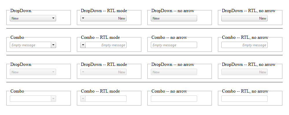 As a part of ongoing effort to unify the looks of the controls, we have changed the looks of the ComboBox to resemble the related RadControls more closely. Namely, the arrow (button) part of the ComboBox looks more button-esque and the input part looks more input-ish.