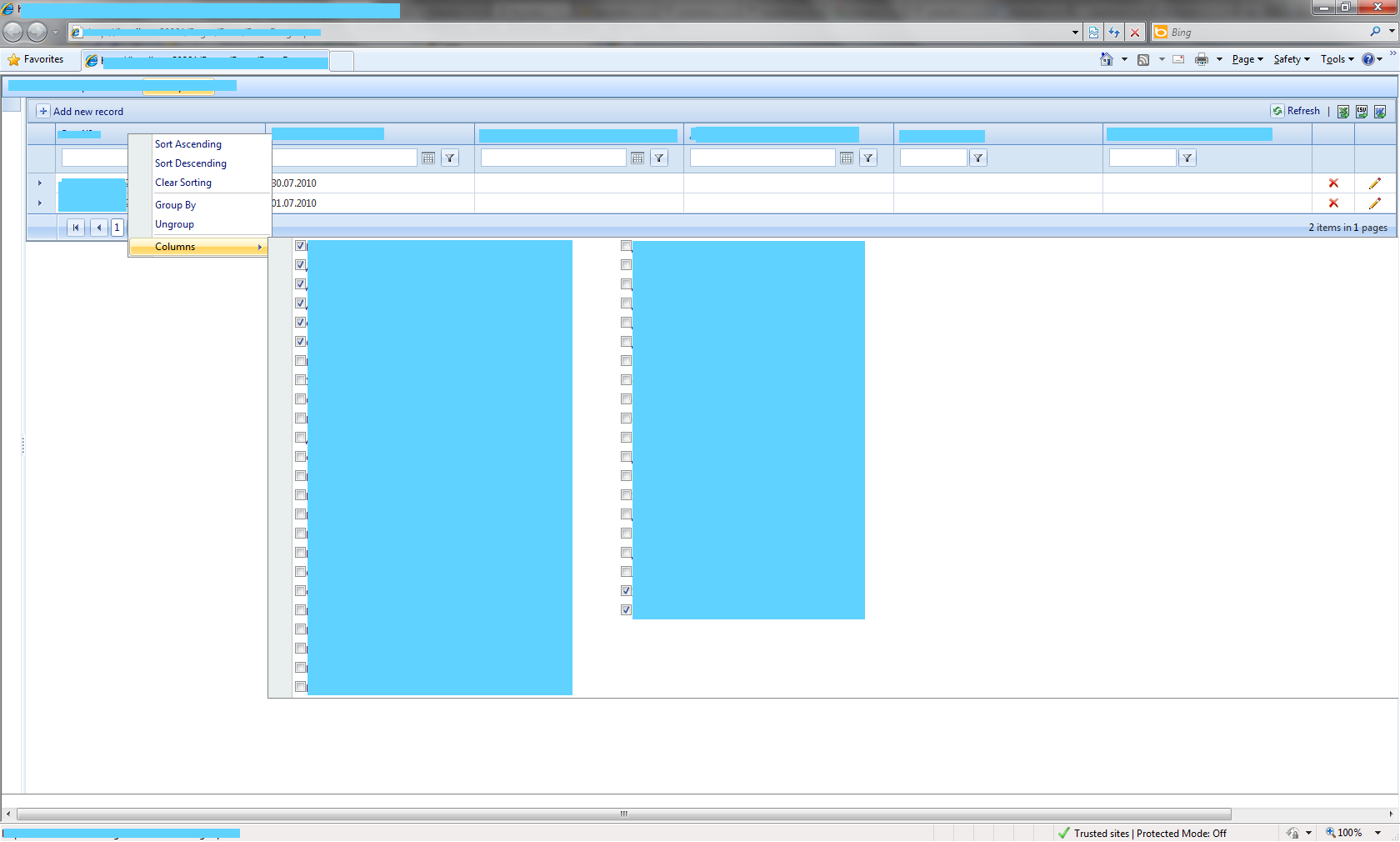 1.<HeaderContextMenu> 2. <DefaultGroupSettings RepeatColumns="2" RepeatDirection="Vertical"/> 3.</HeaderContextMenu>ASP.NET AJAX Q2 2010, .NET4, VS2010.
