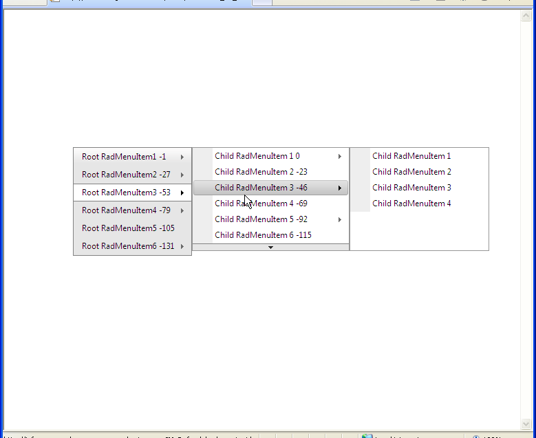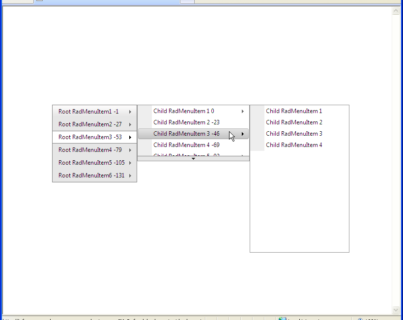 - In the code-behind, I am dynamically setting the OffsetY property of all GroupSettings objects so that all submenus fly-out at a consistent location (i.e., aligned with the top of the root menu, rather than lined up with the menu item that spawned them).