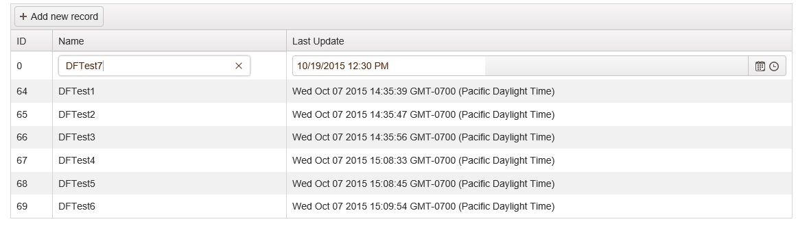 I think I may have a found a bug with how a Grid is displaying data after I've added a record to the table it's bound to. The meat of the problem is in the javascript I'm using to call dataSource.read() after I've added the record. My first attempt looked as follows: