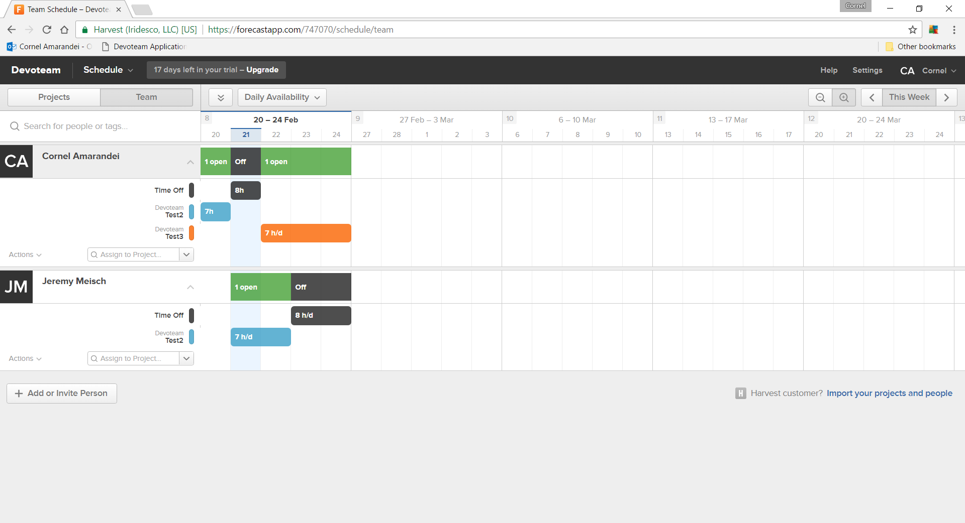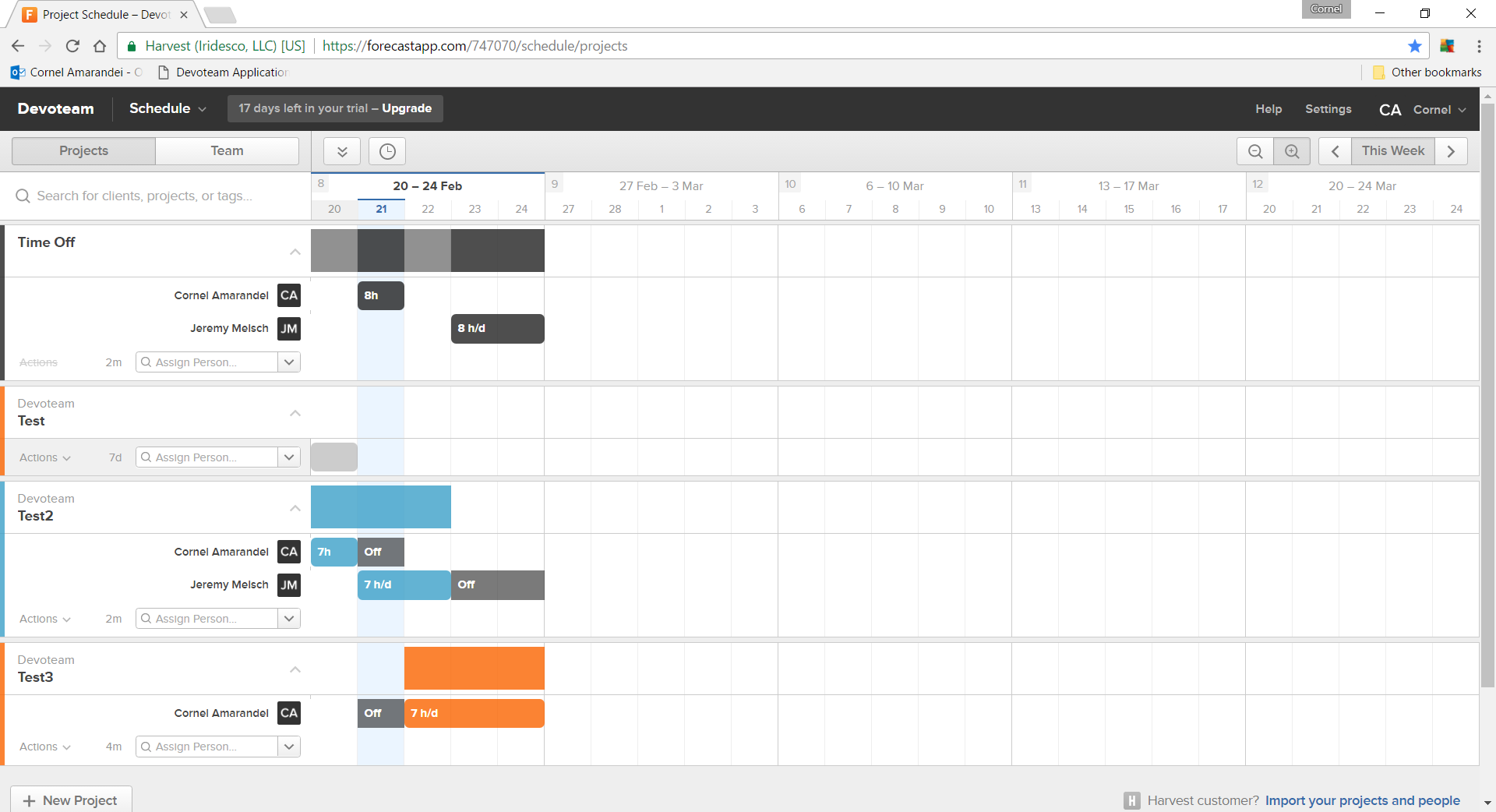 Basicly we would need two Scehuler controls, one with Projects(the data to be grouped in projects and the children of the projects will be the employees) and one with an overview of the Team (the data will be grouped in employees, and the children of the employees will be their projects).