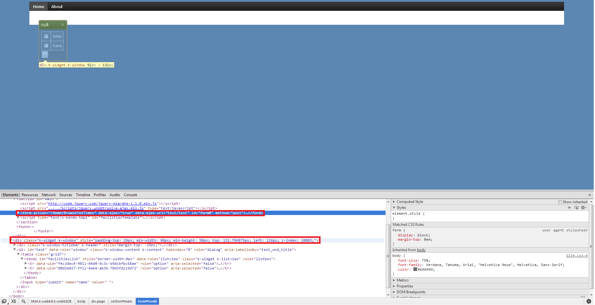 Is it possible to post data back to a controller using a FormCollection object? I would like a user to be able to open a kendo window and select, by way of a checkbox, multiple entries. Then close the window, change data on the parent page and then submit the form (note: the kendo window div exists inside the form). I can get the kendo window to open and display all the data via a listview but I'm not sure how to get the checkbox values (the only piece of the kendo window the user can edit) back to my controller. I suspect kendo might be destroying all the data selected when the window is closed (note: I do not call the destroy command on the window) so I figured I could always create a bunch of hidden fields on the parent page and update them as the user checks off the check boxes but I was trying to avoid that.