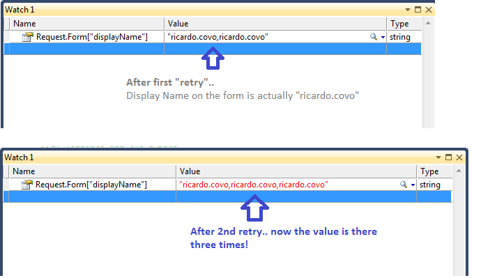 I came across this issue while using the Upload widget... the summary is that when an upload fails, and I hit the retry button, the fields on the metadata get re-appended. Each time I hit the retry button, the value gets appended again.