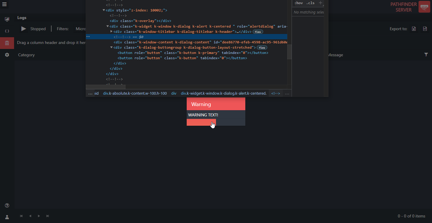 }The problem is that the dialog box buttons don't have a text. It is not an styles issue. I've inspected and the generated div is empty.