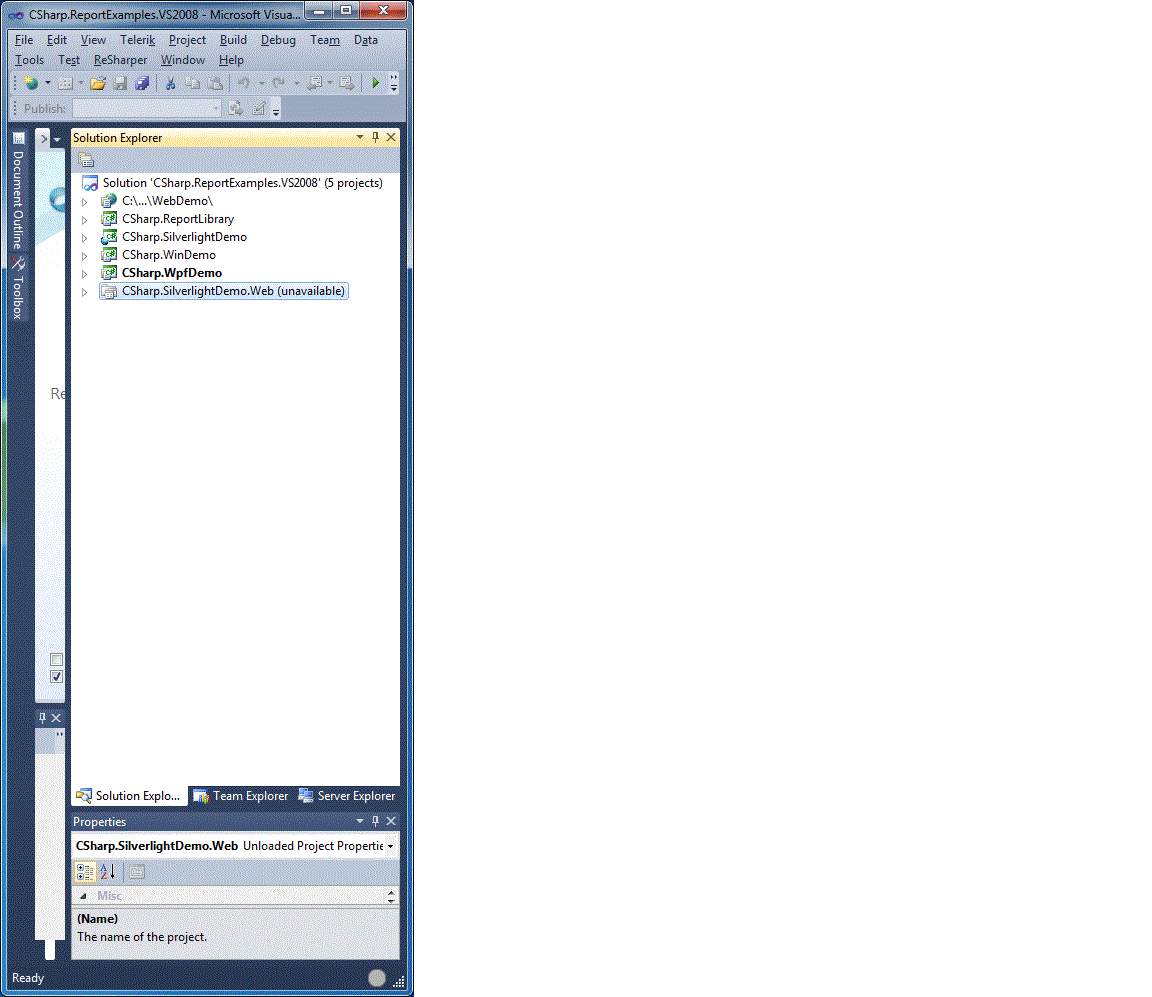 The Telerik Reporting installer comes with examples solution that contains several demo reports and sample projects for each technology. Our advise is to open our examples and review the provided runnable solutions (Start menu --> Telerik --> Reporting Q2 2010 --> Visual Studio 2008 examples).